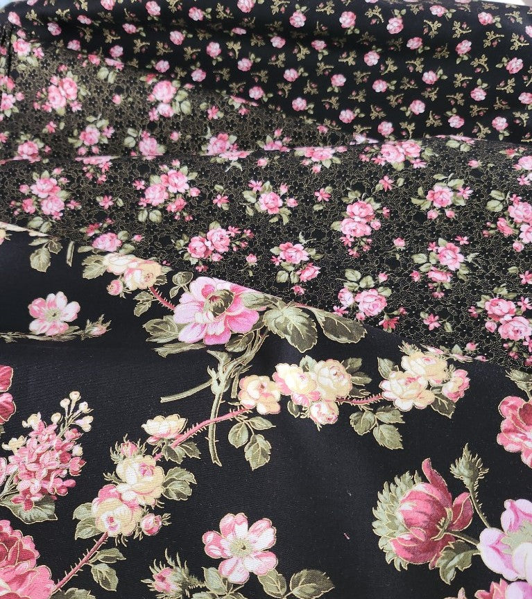 Fabric - Metallic by Benartex, 13557M-12, Promise Me Series, Black and Pink