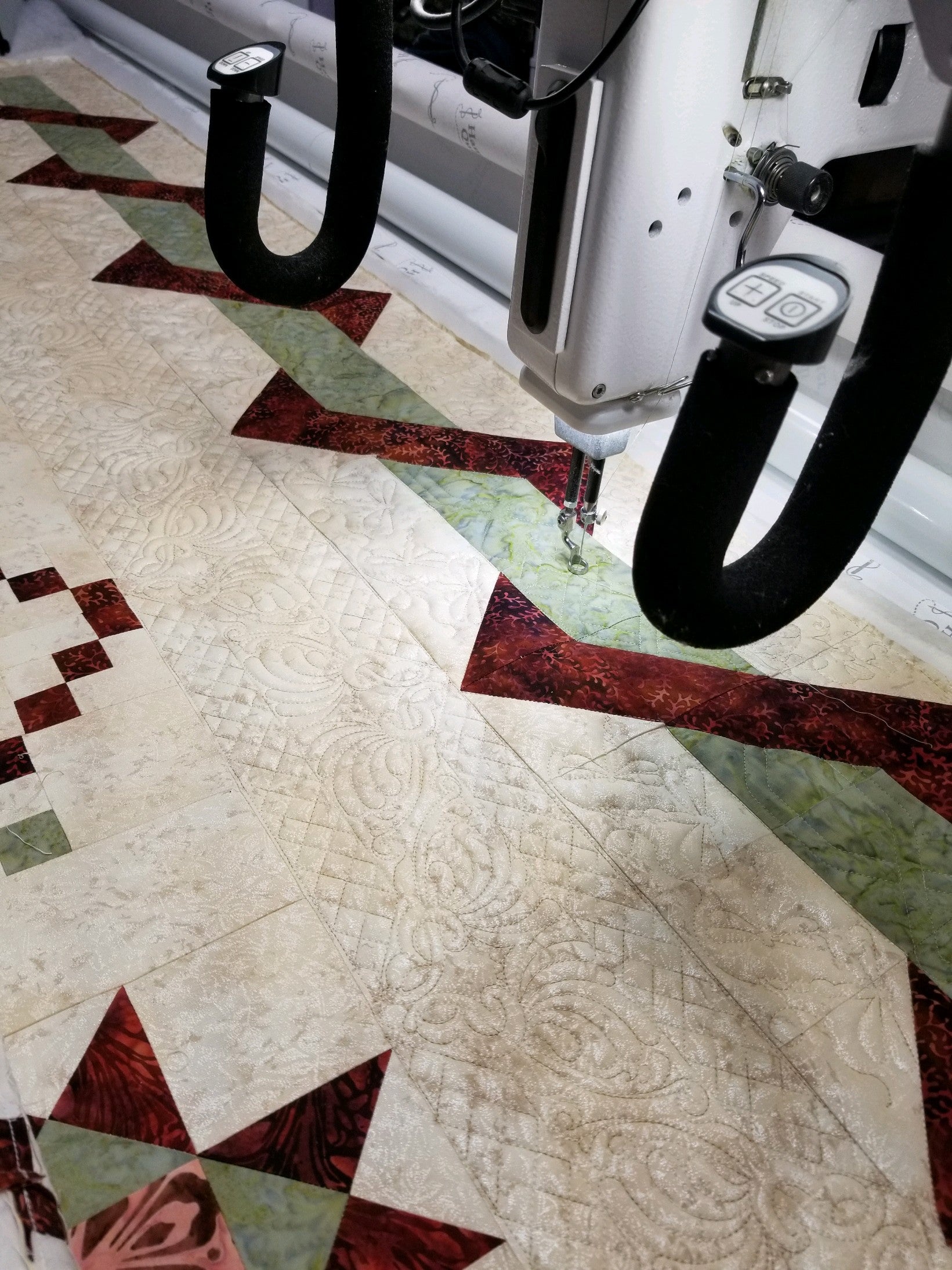 BellyAcres Twisted Stitchery Longarm Quilting provides professional Longarm Quilting with Custom Computerized designs and beautiful Edge-to-Edge designs to compliment your quilt perfectly. We use HQ Art and Stitch software and can accommodate up to 120 inch quilts. You can ship your quilt top with confidence or bring in to the studio to view our quilting designs and vast thread selections. We use Quilters Dream, Pellon and Hobb’s batting as well as a wide selection of 108” wide back fabric to help you finish your perfect quilt.